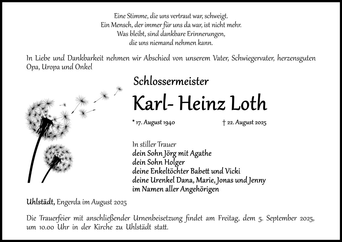 Karl- Heinz Lothgestorben am 22. August 2025