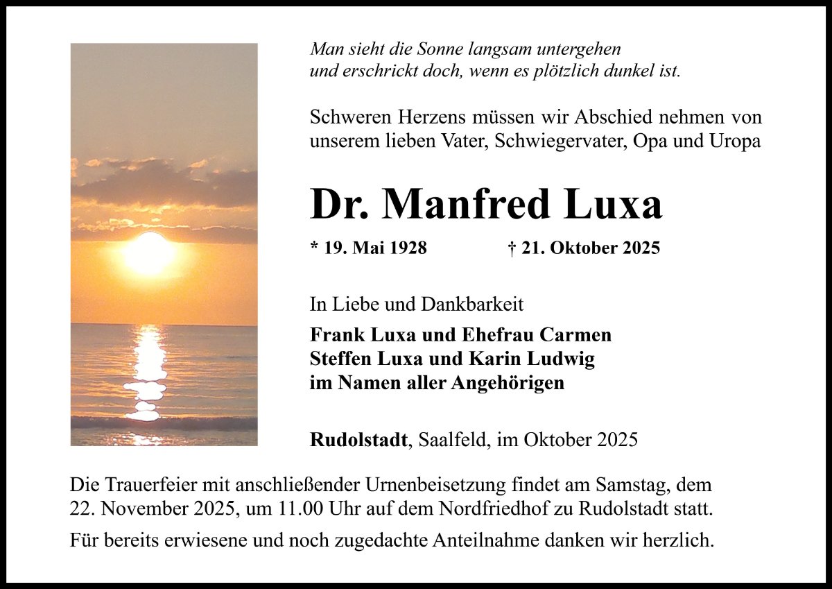 wir wünschen Ihnen für die kommende Zeit viel Kraft und dass es Ihnen gelingt, dankbar auf die positiven Erinnerungen zurückzublicken. Diese Gedenkseite möge Ihnen dabei helfen, Ihre Trauer zu teilen und das Andenken gemeinsam wachzuhalten.