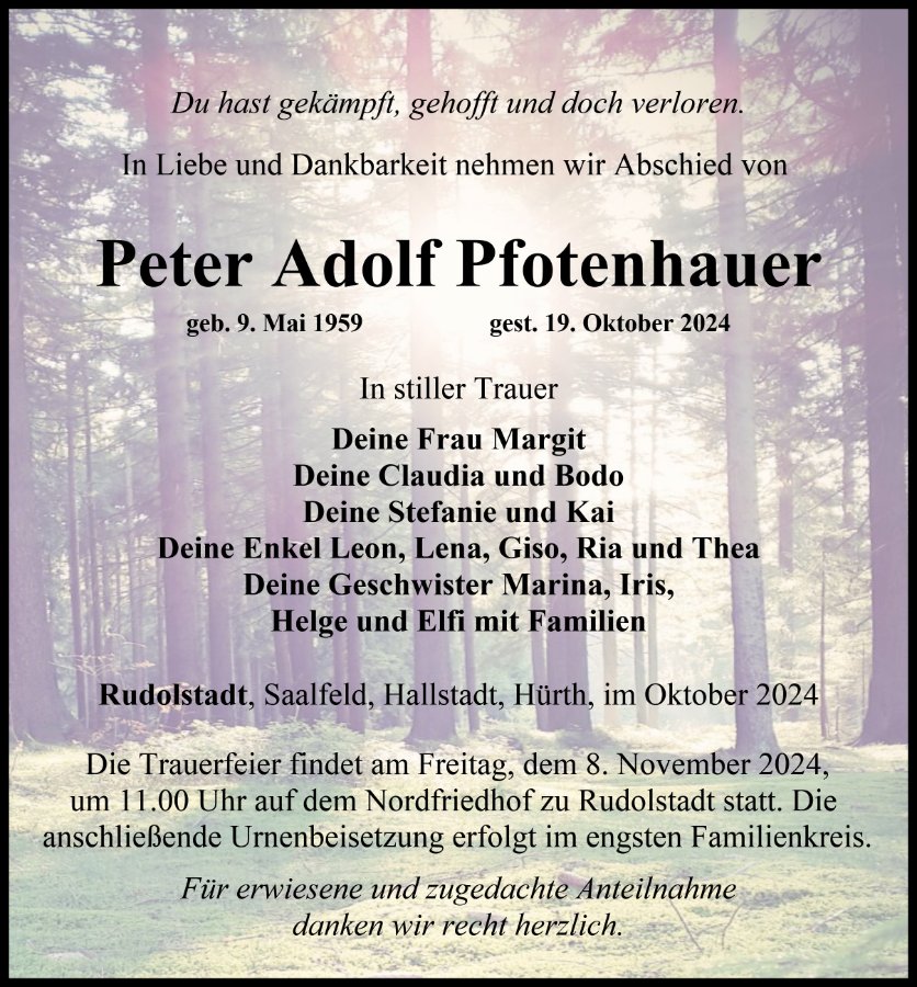 wir möchten Euch unser aufrichtig emfpundenes Mitgefühl zum schmerzlichen Verlust aussprechen. Wir wünschen euch viel Kraft um diese schwere Zeit zu tragen und hoffen, dass ihr dennoch Trost in wundervollen Erinnerungen finden könnt.